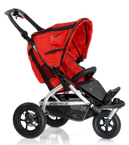 Joggster X Twist Stroller in Red by Trends for Kids The Joggster X Twist Stroller is an ideal stroller for everyday use. Outfitted with a swiveling front wheel that provides the stroller with great maneuverability and agility. Joggster Twist is fitted with a swiveling front wheel for added agility, maneuverability and everyday use. Features Include: Weight: 29.5 lbs without accessories Size (Folded): Approx. 34.7"x23.6"x16.1" inches with wheels (88x60x41 cm) Approx. 29.5"x23.6"x7.9" inches without wheels (75x60x20 cm) Infant Car Seat Compatibility: Accommodates Maxi Cosi, Graco and Peg Perego car seats. Universal adapter also available for most all types of infant car seats. Ergonomic backrest is adjustable with 4-positions that recline and seat with 5-point harness Low-profile tires with aluminum rims and hubs (high-quality ball bearings) Large foldable sun hood with viewing windo